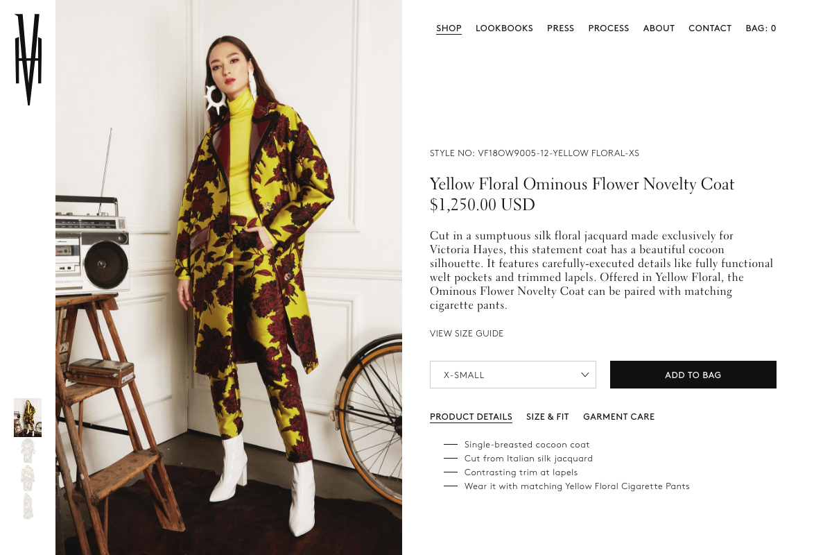 Design and development for Victoria Hayes, a New York-based fashion designer specializing in women’s ready-to-wear garments and accessories. Victoria is the 2014 Women’s Wear Designer of the Year from Parsons The New School for Design.